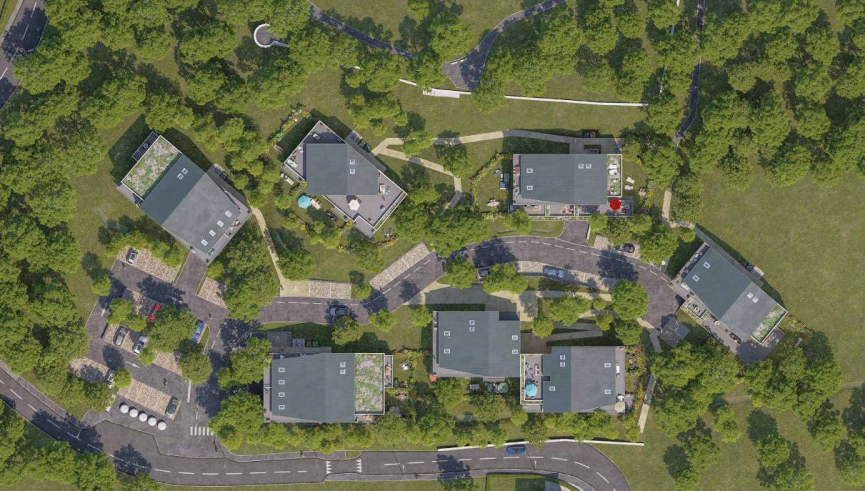 Répartis dans 7 petits bâtiments élégants de 3 étages, les logements se distinguent par leur architecture soignée, l’utilisation de matériaux nobles et un cadre intimiste. Écoresponsable, la résidence intègre une chaudière collective au bois et un aménagement paysager riche et durable.