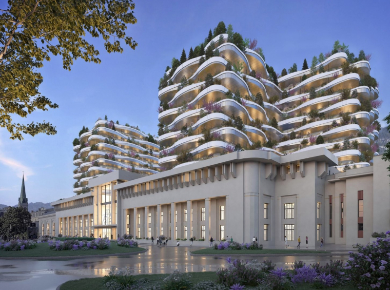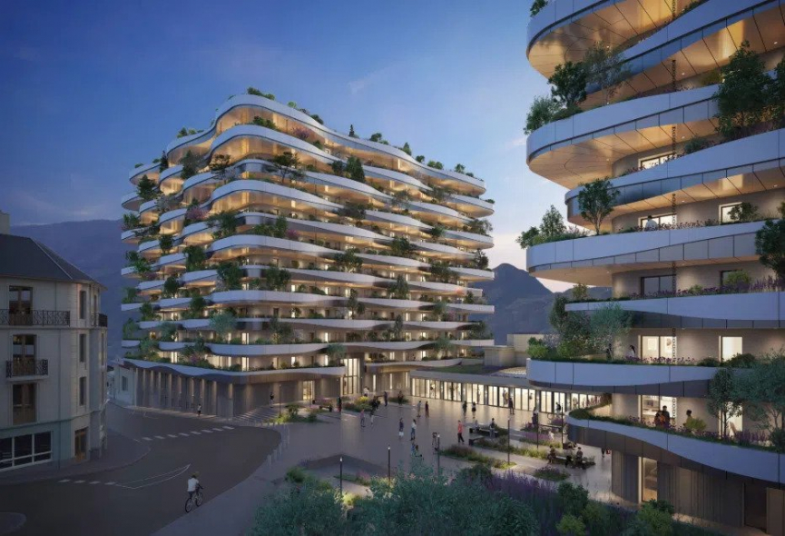 À Aix-les-Bains sur le site historique des anciens thermes, découvrez la nouvelle résidence haut de gamme « LES NOUVEAUX THERMES » une adresse prestigieuse signée par l’architecte visionnaire Vincent Callebaut. Alliant inspiration Art déco et modernité architecturale, elle offre un cadre de vie unique où patrimoine et innovation se rencontrent. Livraison prévue pour le 4ème trimestre 2028. La résidence repose sur un socle accueillant commerces et services, surmonté de 2 bâtiments d’habitation contemporains aux lignes élégantes. Elle propose des appartements neufs du studio au 6 pièces, chacun prolongé de balcons ou terrasses végétalisées offrant des vues spectaculaires sur les massifs alpins et le lac du Bourget. Cave et stationnement inclus. Située au cœur d’un futur quartier central regroupant logements, commerces, bureaux et espaces culturels, la résidence promet un cadre de vie attractif et animé. Elle se distingue également par ses prestations haut de gamme et ses engagements environnementaux (façades végétalisées sur 3,5 km avec plus de 15 000 plantes créant un véritable îlot de fraîcheur, toitures végétalisées, eaux pluviales récupérées, planchers chauffants et rafraîchissants fonctionnent par géothermie). Un lieu rare pour habiter ou investir à Aix-les-Bains au cœur de la Riviera des Alpes, réputée et dynamique. Contactez-nous dès maintenant pour en savoir plus et réserver votre appartement parmi les premiers lots disponibles !